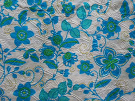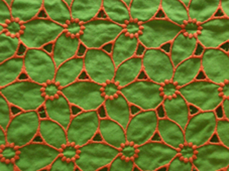 - 綿素材で白地に白糸で刺繍した後、花柄をプリントしてあります。スペイン製。